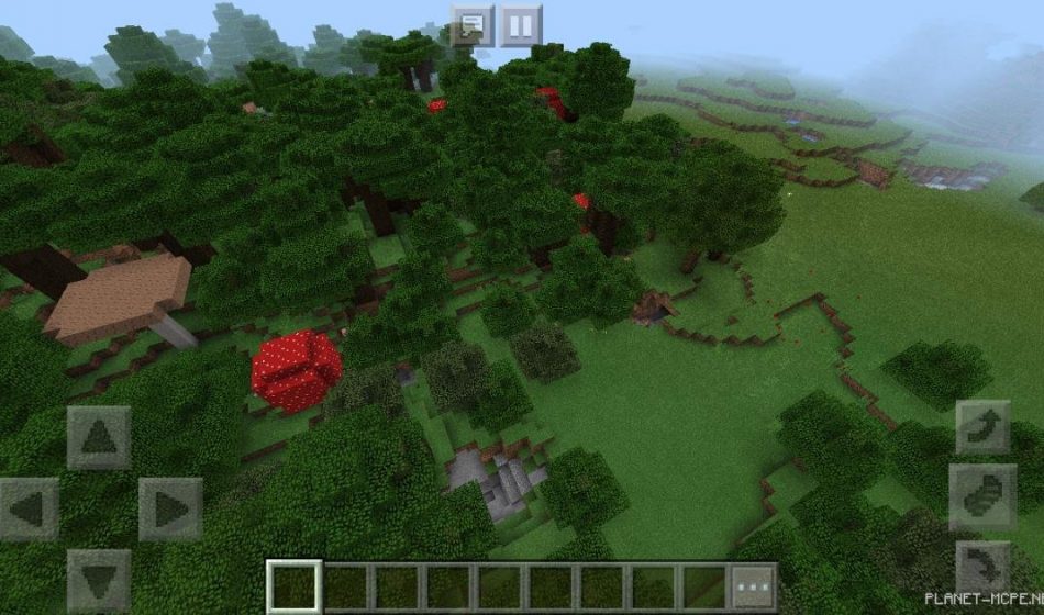 На этом сиде в Майнкрафт Покет Эдишн, располагается большой темный лес, в котором в Майнкрафт ПЕ, вы сможете увидеть растущие грибы, которые вы сможете срубить. В лесу есть несколько расщелин в том числе на площадке МКПЕ.