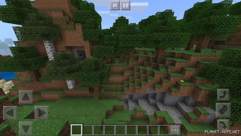 На этом сиде в Майнкрафт Покет Эдишн вы сможете отправиться в горы и подняться на возвышенности, у вас будет возможность посмотреть на красивые пейзажи в Майнкрафт ПЕ. Также есть очень красивые водопады, которые стекают с гор в МКПЕ.