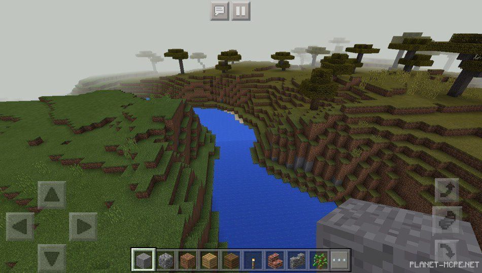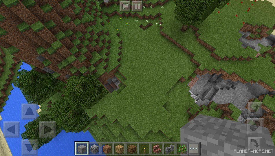 На этом сиде в Майнкрафт пе 1.2 вы появитесь на местности, где протекает река в Minecraft pocket edition. Рядом расположена равнина через которую следует перейти на площадке мкпе, тогда вы сможете встретить пустыню в Minecraft PE.