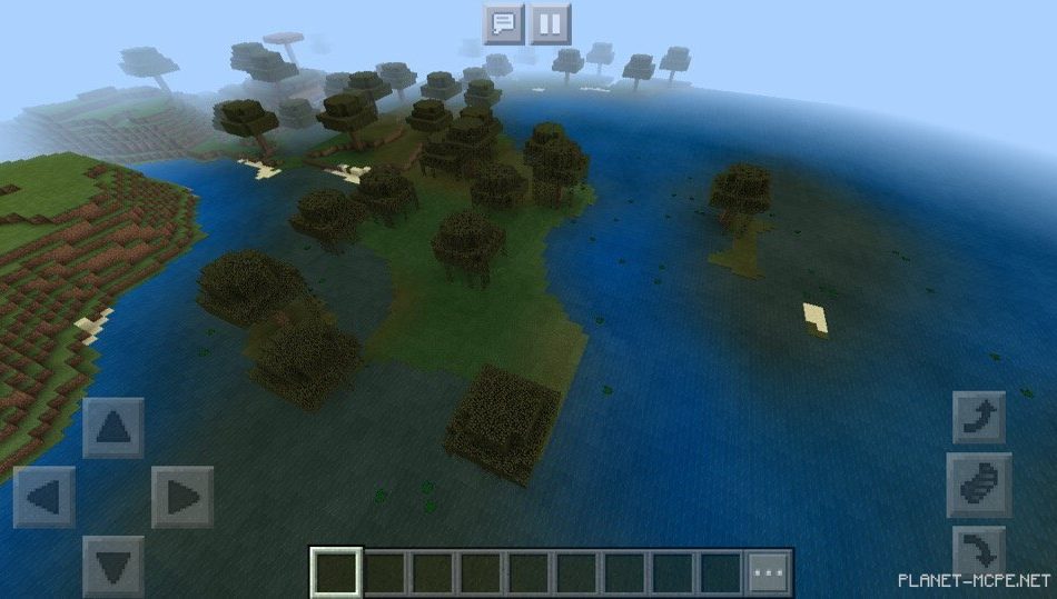 В MCPE вы сможете увидеть масштабные водоемы с рядом растущими лесами.