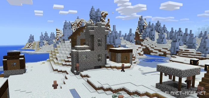 Недалеко от места возрождения появится Снежная деревня, которая расположена в ледяном биоме в Майнкрафт ПЕ 1.1.5/1.1.0. Этот сид позволит вам увидеть красивейшую местность в Minecraft Pocket Edition, а также вам будет интересно прогуляться по деревне, расположенной на ледниках в Minecraft PE. Я думаю, что каждому человеку было бы интересно побывать в ледниках. Вы сможете исполнить свое желание, если поиграете на этом сиде на площадке MCPE.