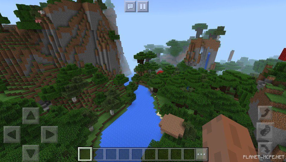 Также, если вы прогуляетесь немного по данной местности в Minecraft Pocket Edition, то вы сможете увидеть реку, протекающую около гор и между деревьями в Minecraft PE 1.2.