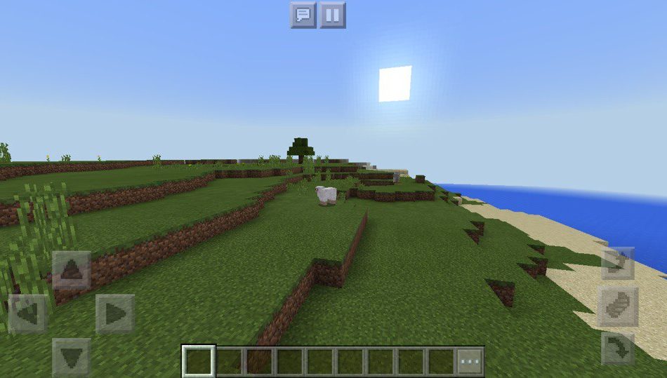 На этом сиде в равнине вы сможете увидеть небольшое углубление в земле в Майнкрафт Покет Эдишн, также там есть вода в Майнкрафт ПЕ 1.2.