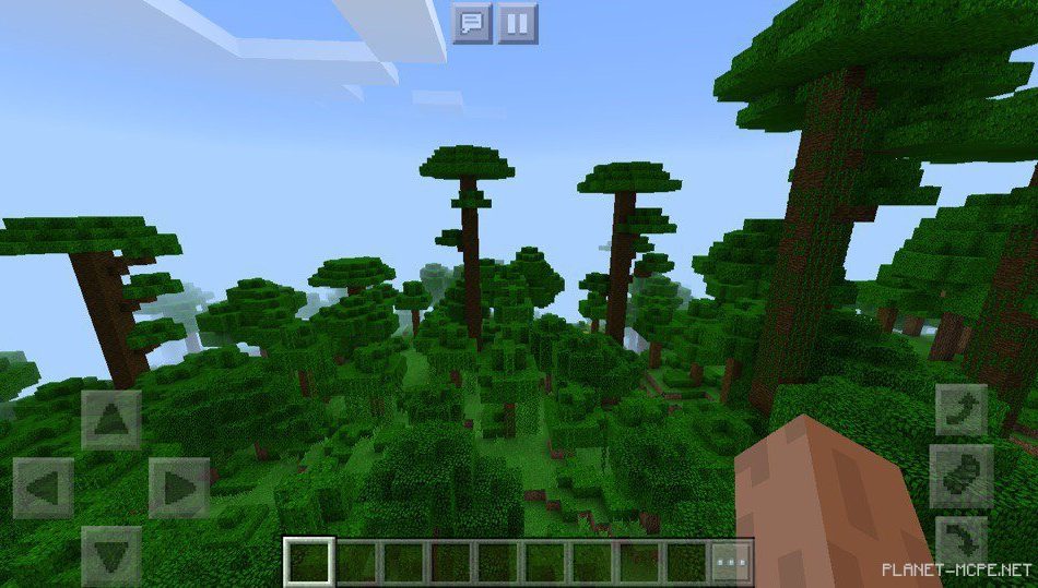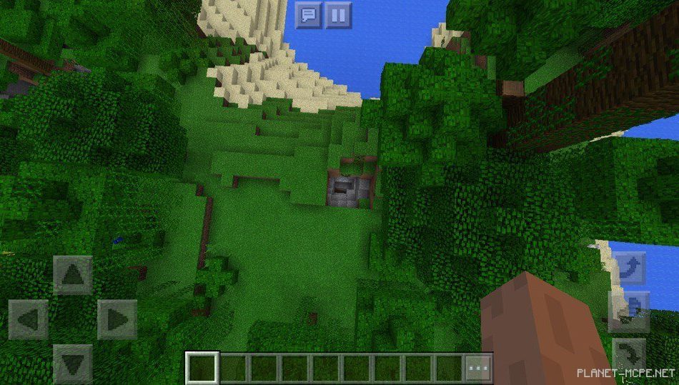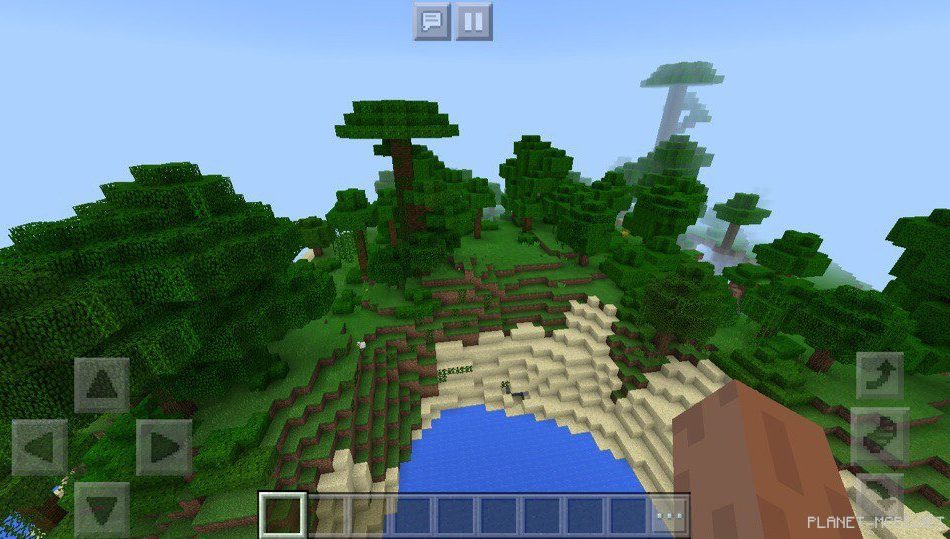 На этом сиде в Майнкрафт Покет Эдишн рядом с вашим местом появления расположены джунгли, в которых растет множество деревьев, также других растений в Майнкрафт ПЕ 1.2.