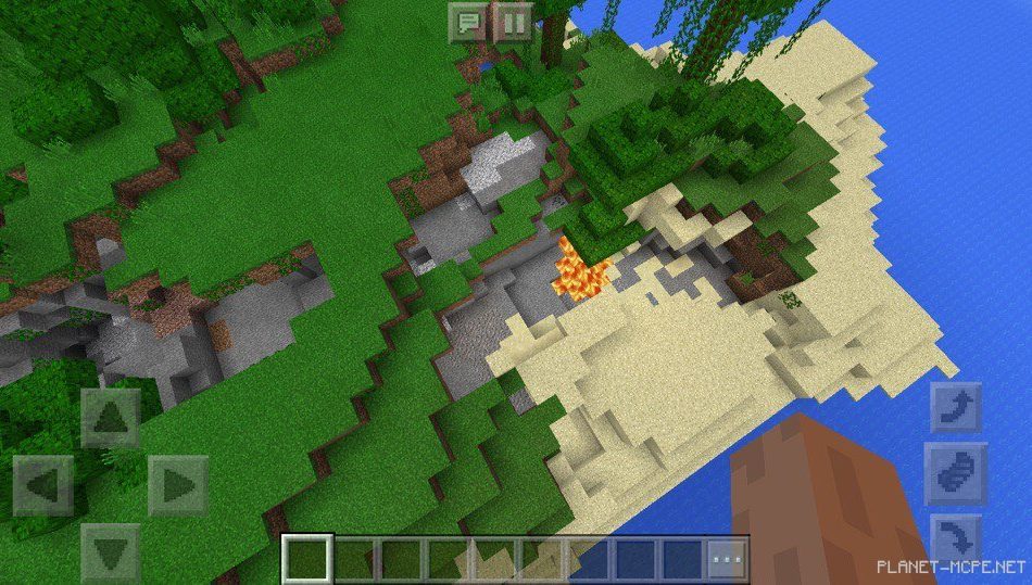 Рядом располагается место в Minecraft PE, в котором есть лава, которую можно использовать для создания генератора булыжника на площадке MCPE!сиде