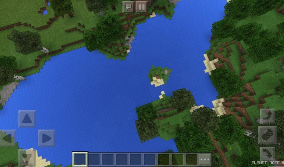 Также в Minecraft Pocket Edition, вы сможете увидеть большой водоем в Minecraft PE, рядом с которым располагается лес, а в водоеме есть небольшой островок на площадке MCPE.