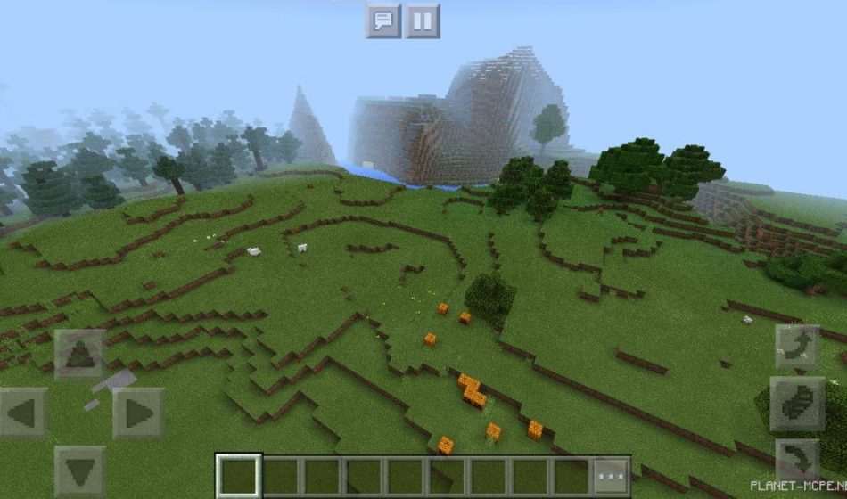 На этом сиде в Майнкрафт Покет Эдишн, вы сможете увидеть огромную поляну в Майнкрафт ПЕ, на этой поляне, а именно равнине есть множество тыкв, а рядом есть большие горы и леса на площадке МКПЕ.