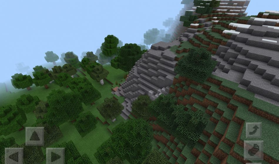 На этом сиде в Minecraft Pocket Edition, вы сможете увидеть различные леса в Minecraft PE. В этих лесах вы сможете отыскать множество различных дров. В лесах есть и береза и дуб на площадке MCPE, а рядом есть большие горы, засыпанные снежком.