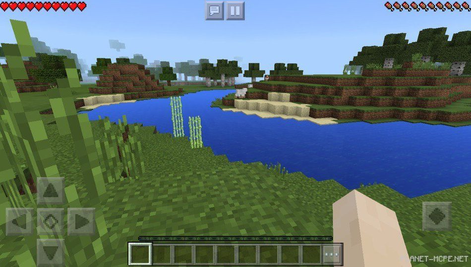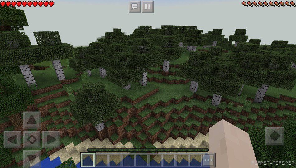 На этом сиде в minecraft pocket edition есть извилистая река, которая протекает между деревьями в определенном пространстве в minecraft pe 1.2.