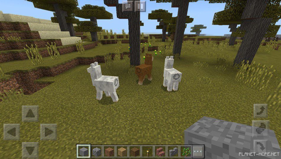 Рядом есть акация, а также ламы, которых можно легко приручить, они станут верными друзьями для вас в Майнкрафт Покет Эдишн.