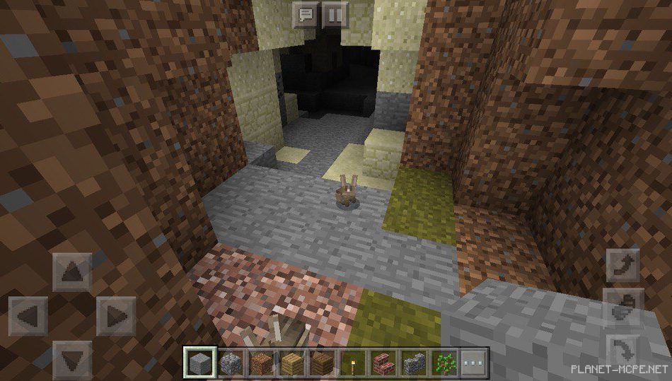 Также есть пещеры, в которых очень удобный заход в шахту в Minecraft PE 1.2.