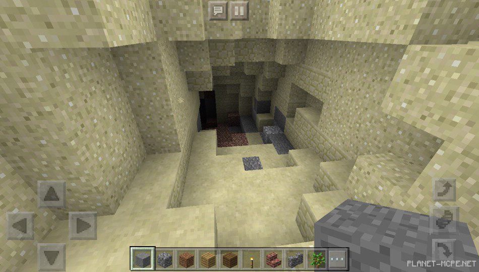 В пустыне можно найти пещеры, в которых можно укрыться на площадке MCPE.