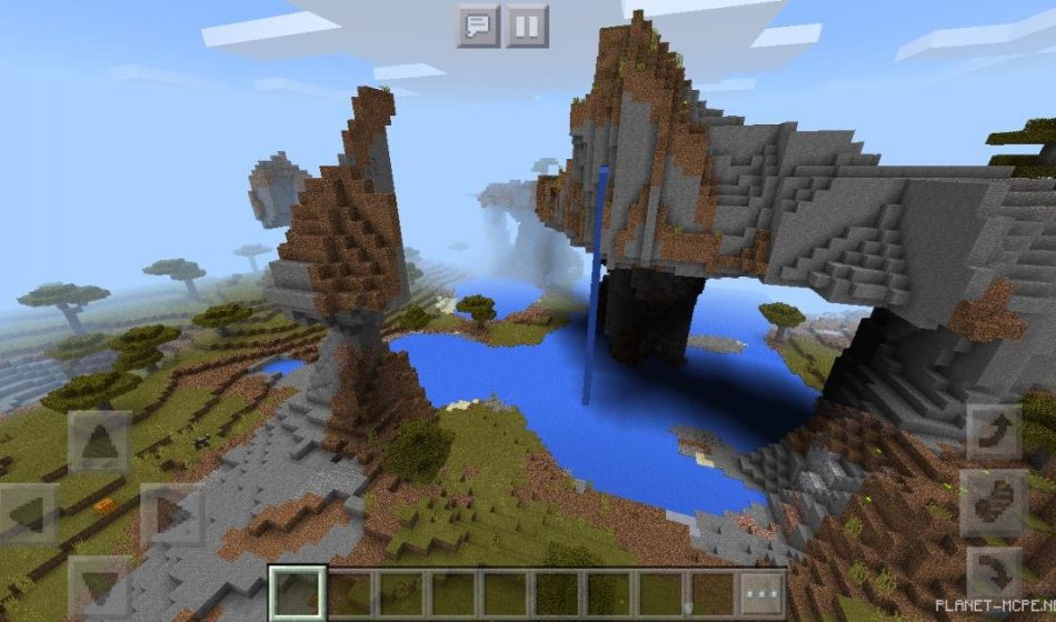 Также в Mineraft Pocket Edition вы сможете увидеть красивейшие генерации в Minecraft PE. Все здесь выглядит очень привлекательно на площадке MCPE!Также вы сможете лицезреть водопад, который стекает с одной из гор, которые располагаются в данной игре!
