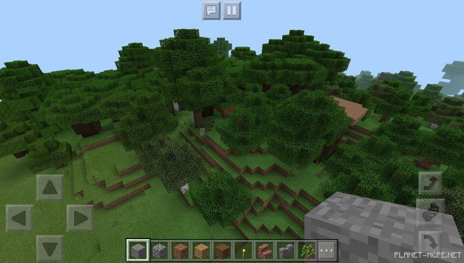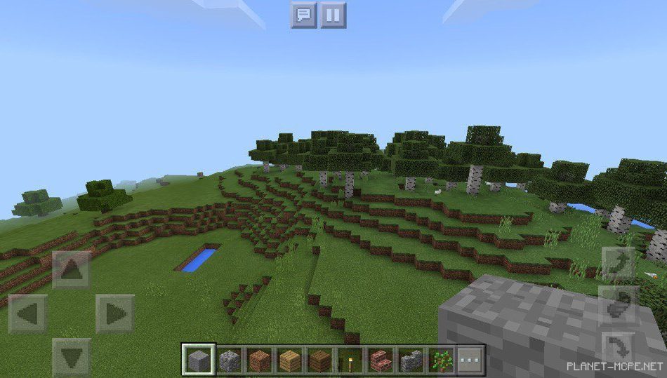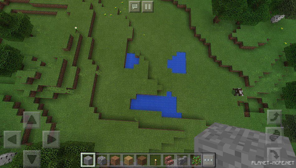 В этом месте на площадке mcpe есть несколько ямок, которые налиты водой, они похожи на какое-то лицо. В майнкрафт покет эдишн есть лес, а рядом протекает водоем, похожий на реку.