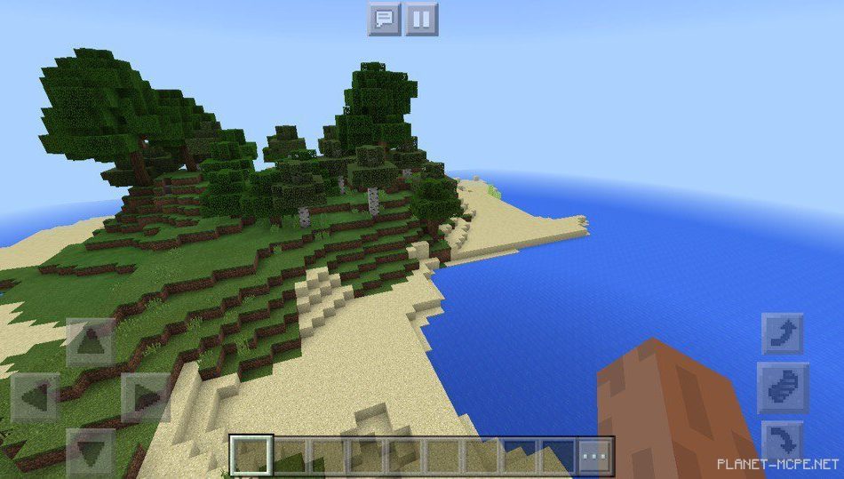 В minecraft pe также есть остров с деревом, который немного побольше. Вы сможете сломать дерево, собрать саженцы на площадке mcpe и увеличить количество своей растительности, также из дерева можно сделать мост, который можно провести по воде. Возможно, вы найдете большую территорию вне островов на этом сиде!