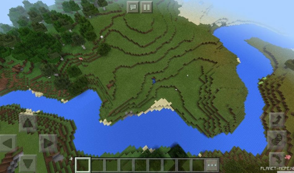 На этом сиде в Майнкрафт ПЕ протекает длинная река, в Майнкрафт Покет Эдишн, она протекает между равниной. Рядом есть пустыня на площадке МКПЕ, а на равнине располагается лес в Minecraft Pocket Edition.