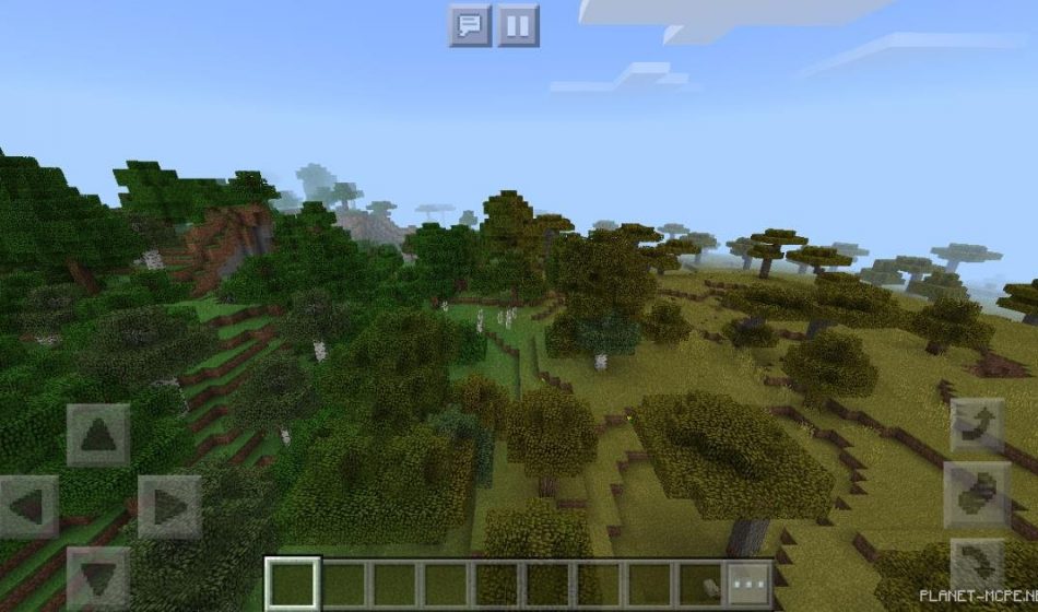 В Minecraft PE рядом вы сможете увидеть большие леса, один с акацией, а другой с березой, также навесы на площадке MCPE.