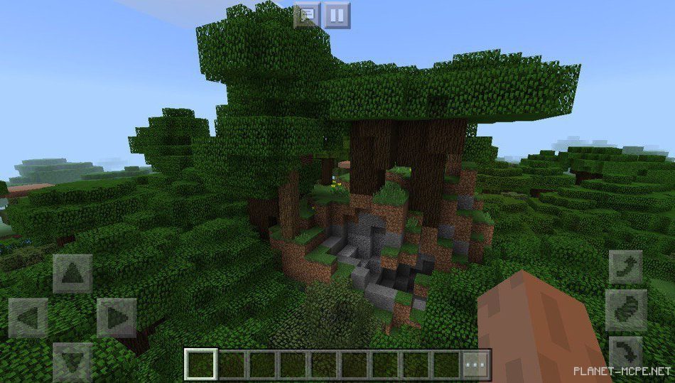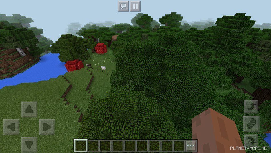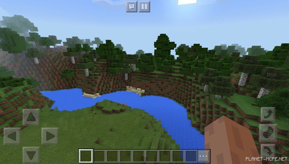 Также рядом протекает река, которая может привести вас к огромному лесу в minecraft pe 1.2, в котором вы также можете раздобыть множество полезных ресурсов для время провождения на площадке mcpe.