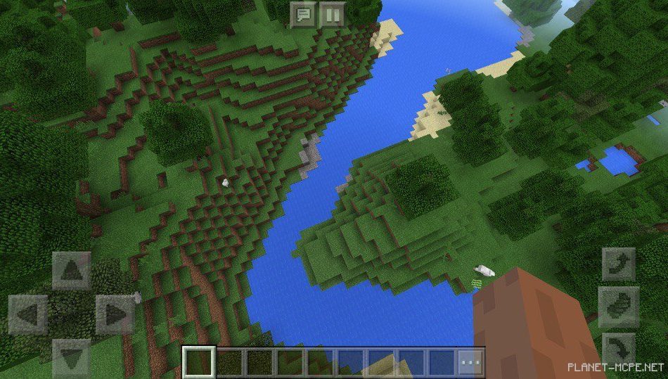 Также вы сможете увидеть протекающие речки, рядом с которыми иногда вы сможете встретить тростник в Minecraft Pocket Edition. Речки хоть и не глубокие и не очень длинные, в них здорово покупаться в Minecraft PE и половить рыбу.