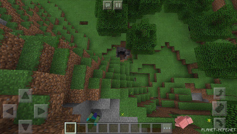 Также около леса вы сможете найти и другие пещеры в Minecraft Pocket Edition. Одна из этих пещер уходит вглубь в Minecraft PE 1.2.