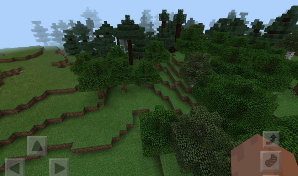 Также, рядом в Minecraft Pocket Edition есть и другой лес. Там растет и дуб, и береза и даже большое количество хвои! Которая отлично гармонирует на фоне в Minecraft PE!