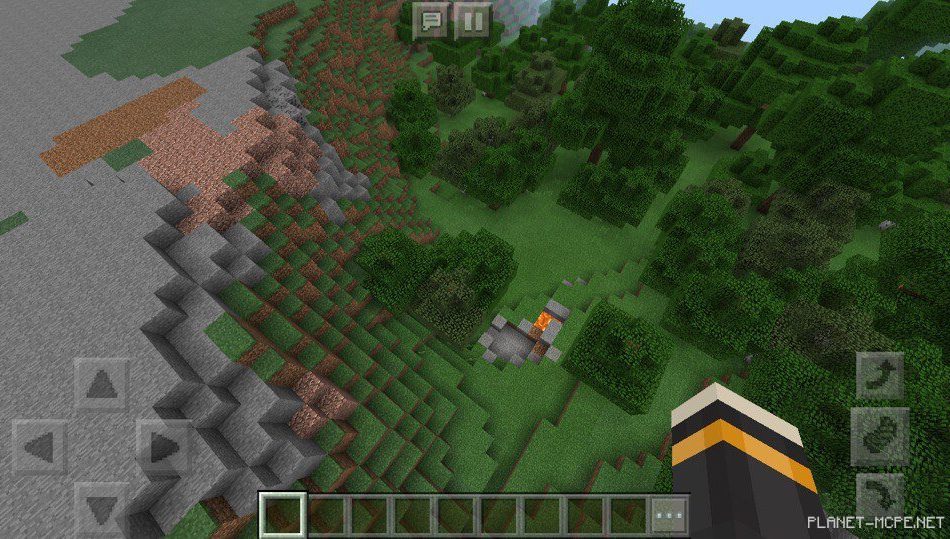 Также в горах, где также есть расщелины есть множество ресурсов, которые будут полезны на начальной стадии игры в Minecraft Pocket Edition.