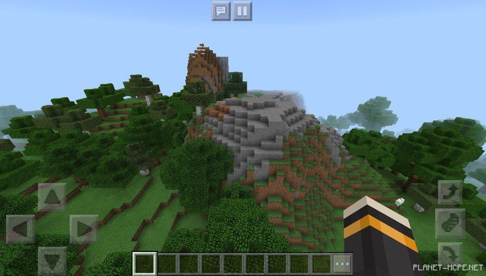 Он располагается около леса и в конце горы, на которой вы будете находиться на площадке MCPE. Также вы сможете увидеть некоторые круглые возвышенности, которые если обработать можно сделать как шар, далее идет снежный биом.