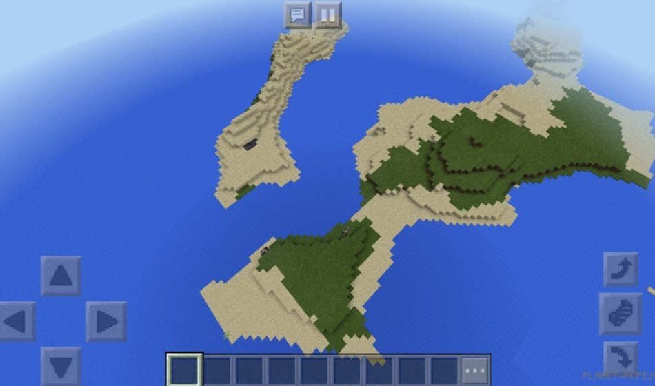 На этом сиде в Майнкрафт Покет Эдишн вы сможете увидеть множество различных островов, самым большим островом в Майнкрафт ПЕ является остров, который покрыт и песком и травой, рядом же располагается небольшой песчаный остров на площадке МКПЕ.