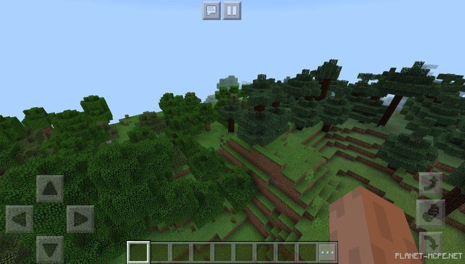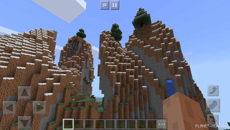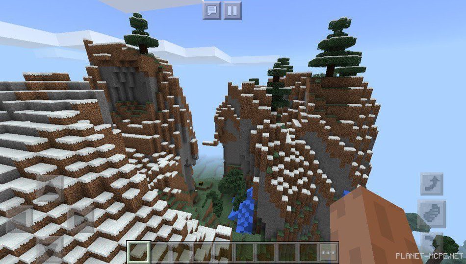 Также есть и другие горы, которые имеют навесы, а также блоки, висящие в воздухе без опоры на площадке MCPE! Рядом есть смешанный лес, в котором можно раздобыть нужные ресурсы!