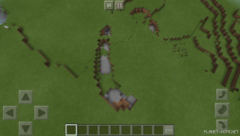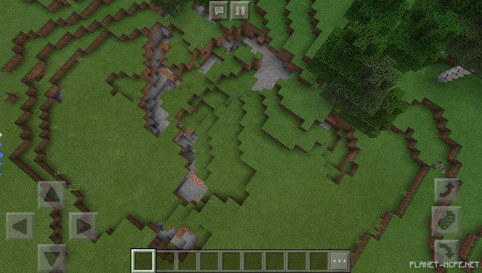 На этом сиде в Майнкрафт Покет Эдишн есть разрывы в земле, которые похожи на пещерки в Minecraft PE, ведь в некоторых из них есть спуск на площадке МКПЕ!