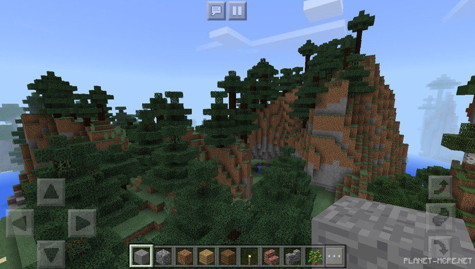 Вы можете посмотреть на горы, на которых растут деревья. Если вам станет скучно, то можете на нее залезть, оттуда смотреть с высока на площадке MCPE.