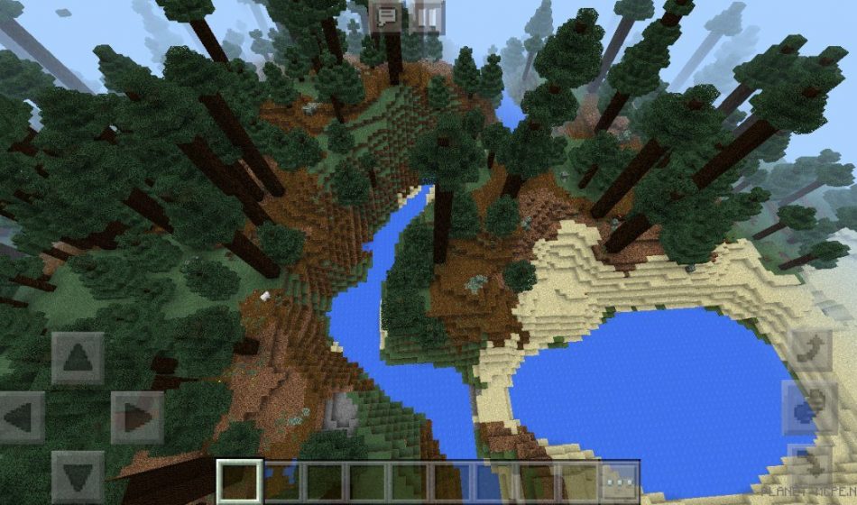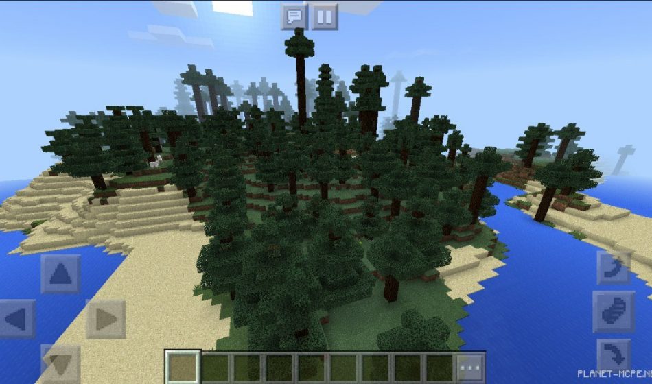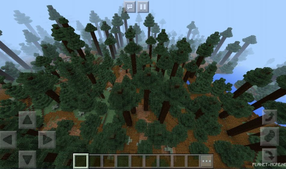 На этом сиде в Майнкрафт Покет Эдишн вы сможете увидеть то, что вы появились в огромном хвойном лесу в Майнкрафт ПЕ, столбы у этих деревьев действительно огромны на площадке МКПЕ!
