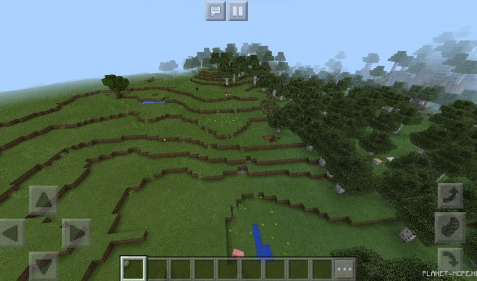 На этом сиде в Майнкрафт Покет Эдишн вы попадете на территорию, где располагается равнина в Майнкрафт ПЕ, там растет несколько одуванчиков, а рядом же в свою очередь расположен большой березовый лес на площадке МКПЕ.