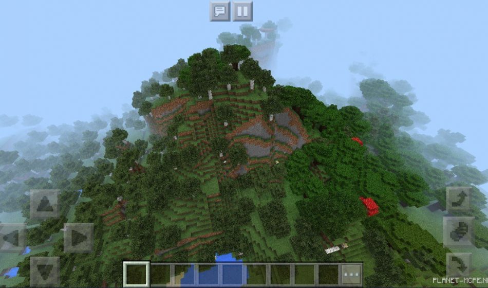 В Minecraft Pocket Edition вы сможете увидеть неподалеку большую гору, там растет береза, однако — снизу вы сможете увидеть большой темный лес в Minecraft PE, там же вы сможете раздобыть темного дерева, а также грибов для супа.