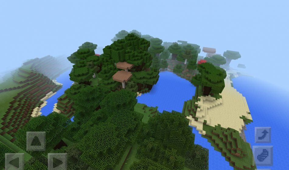 Также, важно сказать то, что рядом есть большой темный лес, который расположился в MCPE. В лесу есть не только деревья, но и грибы, а также можно увидеть водоемы поблизости.