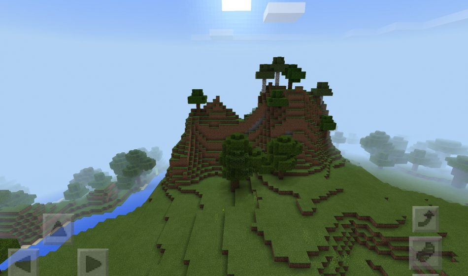 На этом сиде в Майнкрафт Покет Эдишн, вы сможете увидеть красивые горы, которые расположились в Майнкрафт ПЕ, на этих горах растут различные деревья, а именно дуб и береза, рядом также в МКПЕ имеется лес, а по другую сторону течет речка.