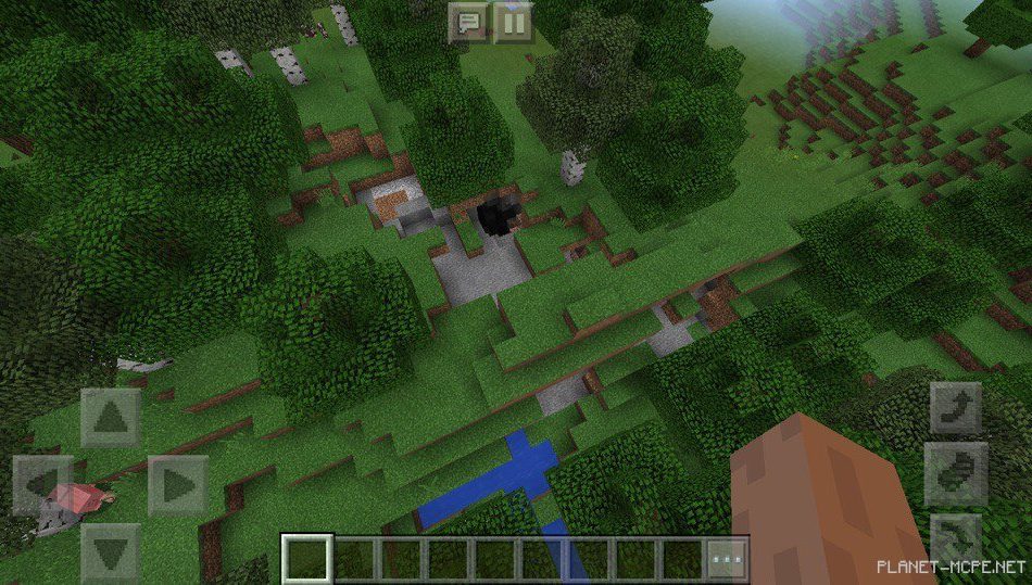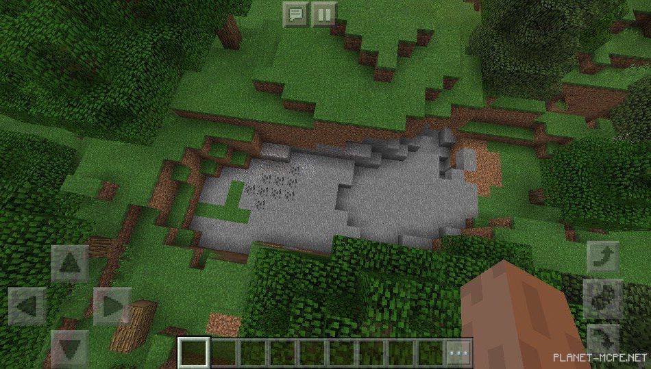 В смешанном лесу, расположенный рядом вы сможете увидеть небольшие пещерки, в которых есть ресурсы в Minecraft PE 1.2.