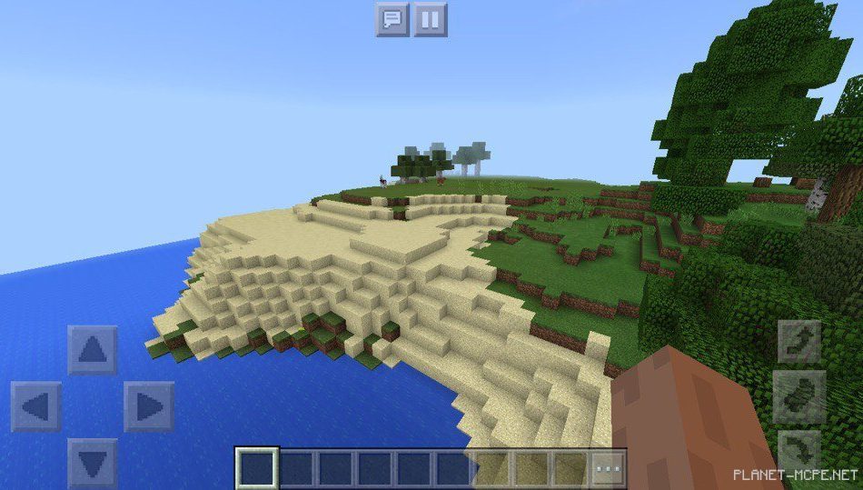 На этом сиде в Майнкрафт Покет Эдишн вы сможете попасть на пустынную часть острова в Майнкрафт ПЕ, к томуже рядом с песком на площадке МКПЕ есть местность, где растет трава и деревья в Minecraft Pocket Edition.