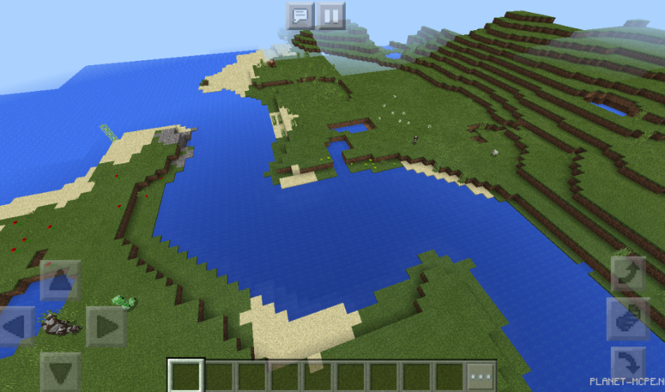 На этом сиде в Майнкрафт Покет Эдишн вы сможете увидеть две большие реки, которые протекают среди больших островов в Майнкрафт ПЕ, также на площадке МКПЕ есть пещерки, а также на равнинных местностях в Minecraft Pocket Edition вы сможете увидеть множество цветков в Minecraft PE!