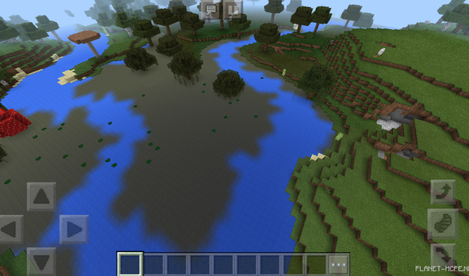 Также рядом есть болотный биом, в котором есть водоем. В нем же протикают синии реки, на фоне серых они прекрасно выглядят в Minecraft PE!