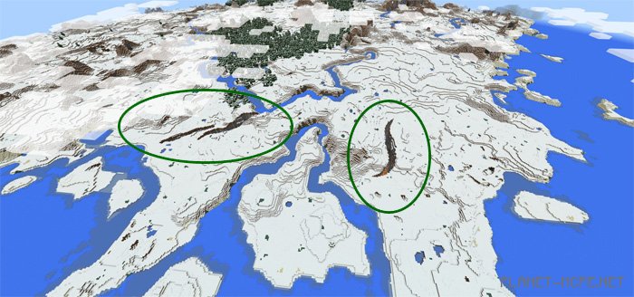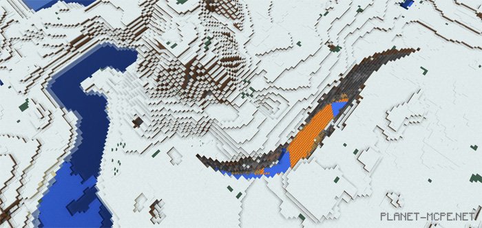 Недалеко вы также сможете найти большой снежный биом в Майнкрафт Покет Эдишн. Там есть несколько других оврагов. Это — точно необычное, замечательное дополнение для игры.