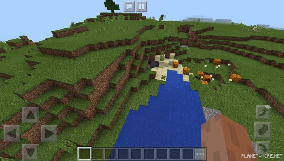 На этом сиде в Майнкрафт Покет Эдишн вы сможете увидеть такое явление в равнине. В равниной местности есть пещера в Майнкрафт ПЕ, в которой есть вода внизу, а также есть ресурсы на глубине на площадке МКПЕ.