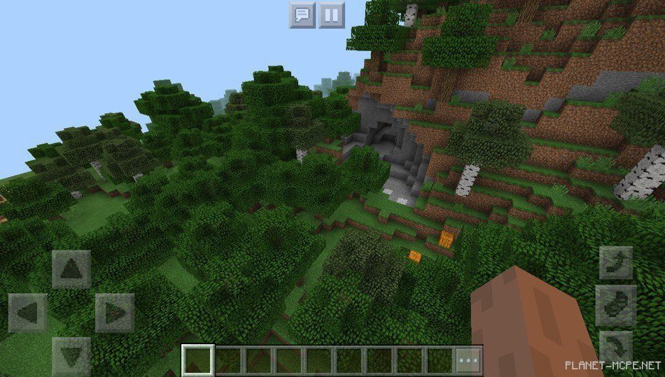 На этом сиде в Майнкрафт Покет Эдишн есть огромный лес, рядом с которым есть гора в Майнкрафт ПЕ 1.2, в которой есть пещера, в которой можно сделать уютный домик и быть защищенным на площадке МКПЕ.