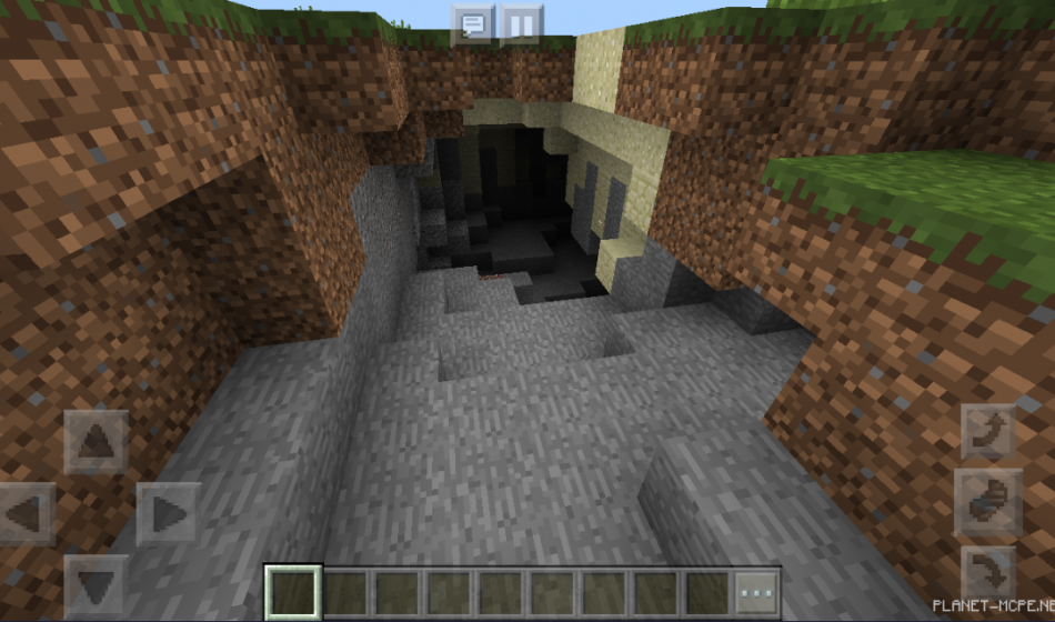 Недалеко от места вашего появления на площадке MCPE, есть пещерка, в которой можно поселиться в Minecraft Pocket Edition. В начале игрового процесса там было бы удобно жить, также там есть ресурсы.