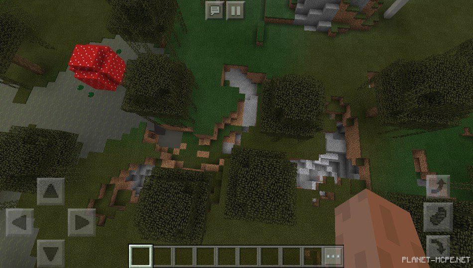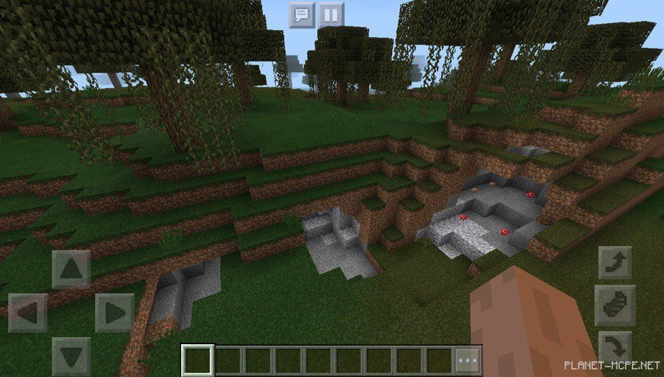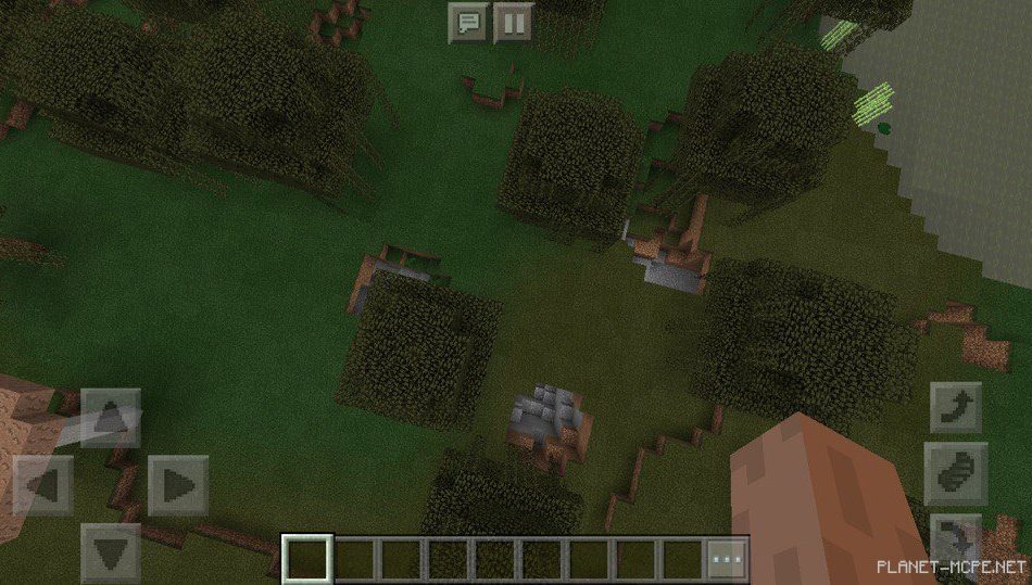 На этом сиде в Майнкрафт Покет Эдишн есть болотный биом, в котором растет много деревьев в Майнкрафт ПЕ. Также в этом биоме на площадке MCPE вы сможете встретить множество пещер, в которых можно что-то раздобыть для потребления в Minecraft Pocket Edition.