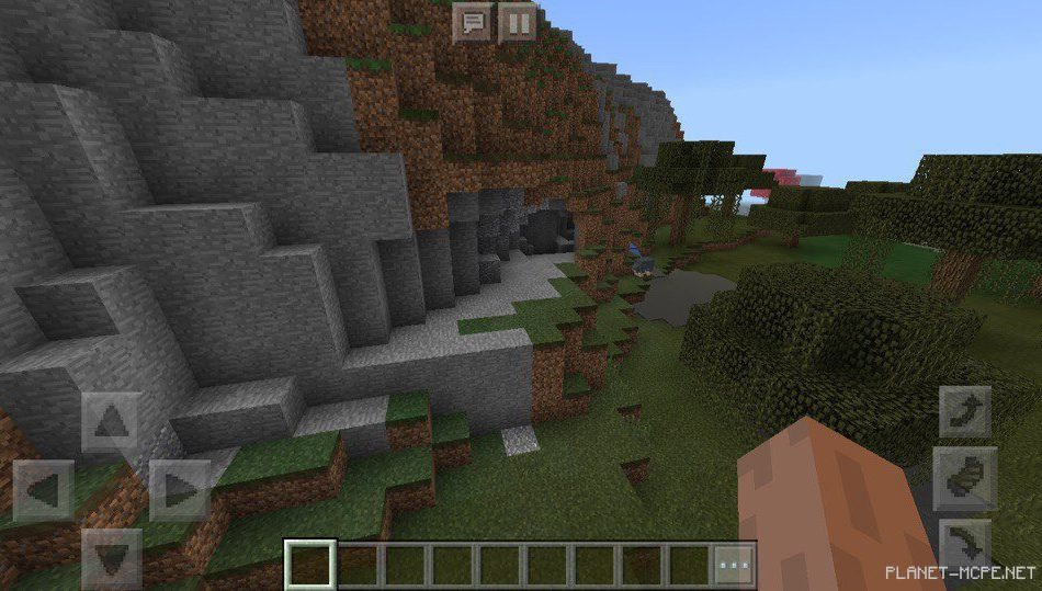 В горах также есть пещеры, в которых можно временно поселиться в Minecraft PE 1.2.