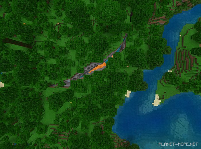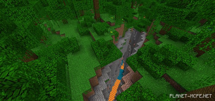 Этот сид в Майнкрафт Покет Эдишн отлично подойдет для выживания в джунглях в Майнкрафт ПЕ. Вы заспавнитесь посреди густых джунглей, рядом с которыми находится огромный овраг в МКПЕ, он находится всего в 10-20 кварталах от спавна.