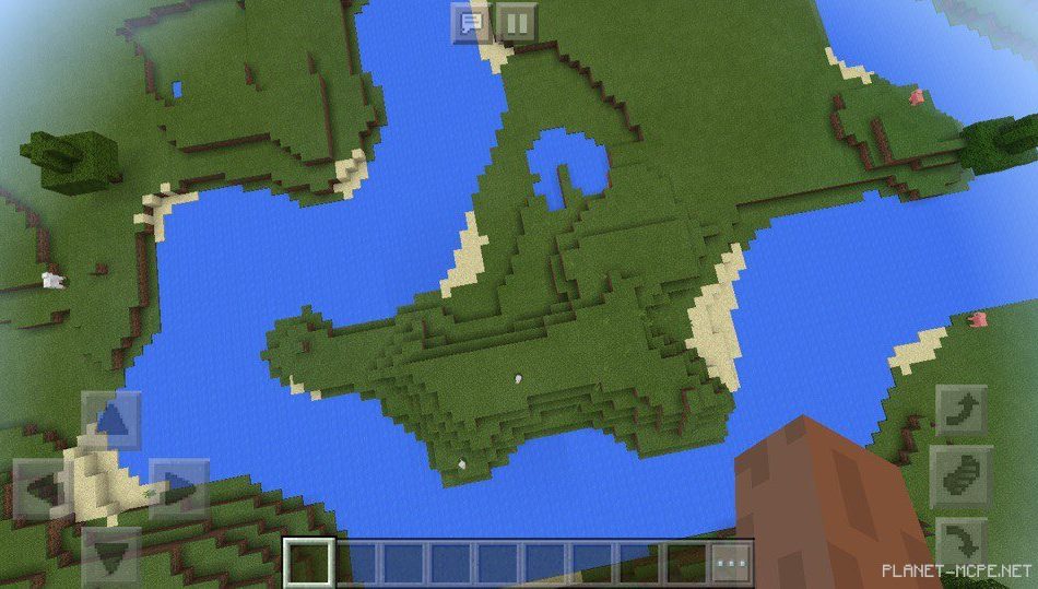На этом сиде в Майнкрафт Покет Эдишн есть равнина, в которой растут тыквы в Майнкрафт ПЕ 1.2. Если посмотреть в сторону реки, то можно увидеть березовый лес на площадке МКПЕ.