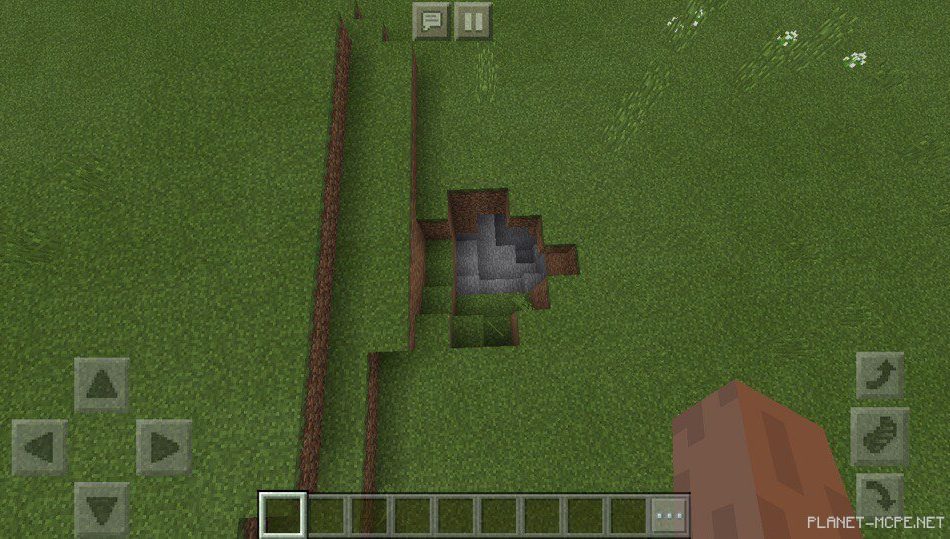Также есть пещера, в которой можно спрятаться. Допустим, от мобов или дождя на площадке MCPE.