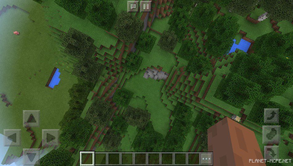 На этом сиде в Майнкрафт Покет Эдишн в лесу, расположенном около вашего места появления в Майнкрафт ПЕ есть небольшие пещеры, а также водоемы на площадке МКПЕ.